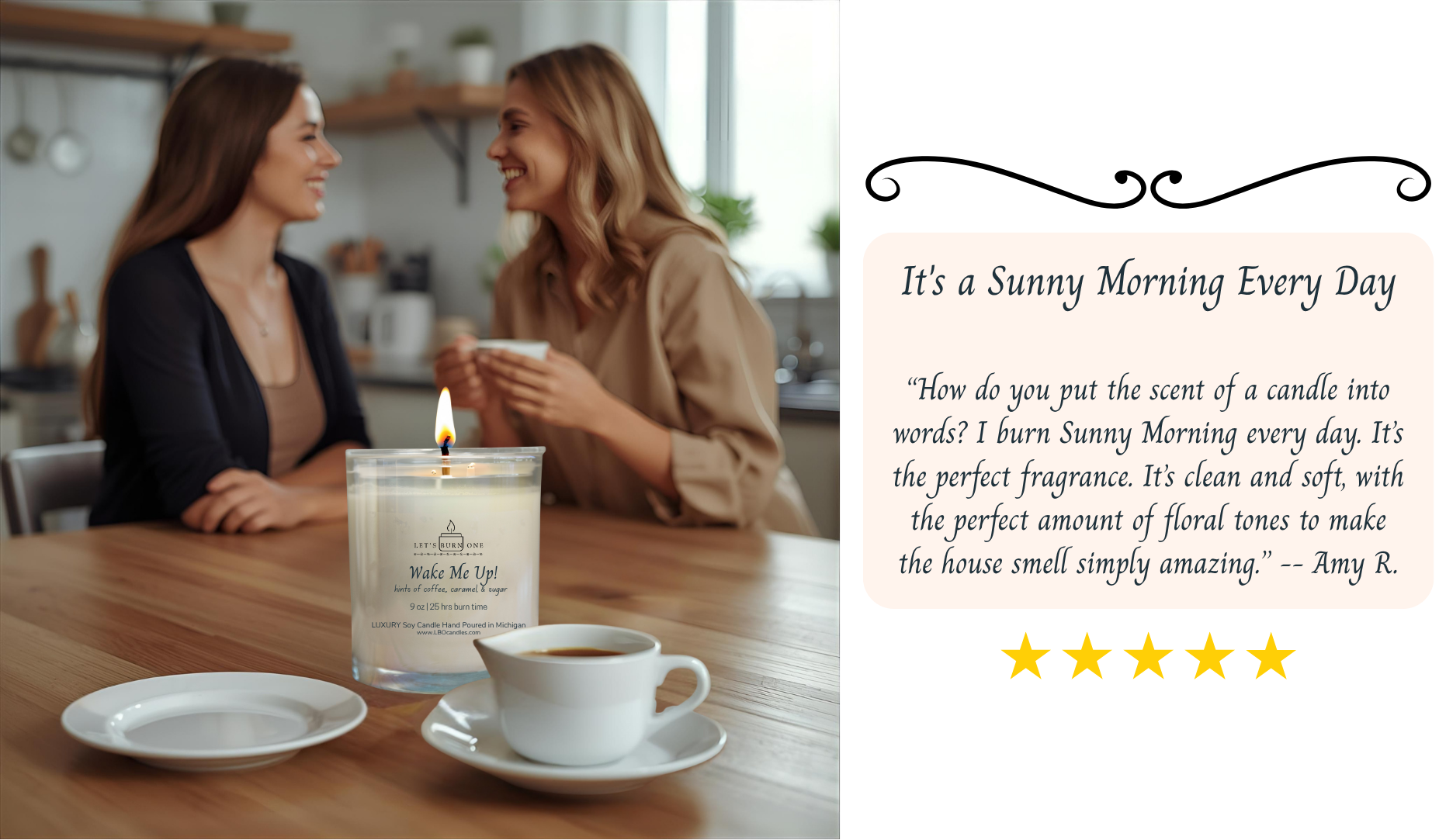 Welcome to our candle review page! Our candles are crafted with care to bring fresh, clean, and comforting fragrances into your home. Each candle is made from quality soy candle products, designed for a clean burn and long-lasting scent that fills your space with warmth and tranquility. Your feedback is important to us, as it helps us continue creating candles that bring light and comfort to your everyday moments. Thank you for your time and for sharing your opinion — we truly value your thoughts and support.